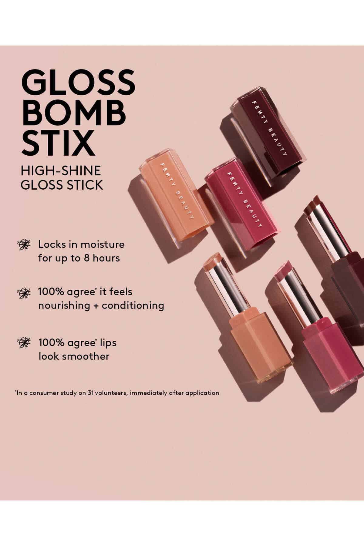 اصنعي مظهرًا بلون الخوخ الناعم مع Gloss Bomb Stix High-shine Gloss Stick- Two’lip Kiss – Light Peach. يمنحك قلم اللمعان هذا لمعانًا عاليًا بلون الخوخ الفاتح للحصول على مظهر منعش وشبابي.