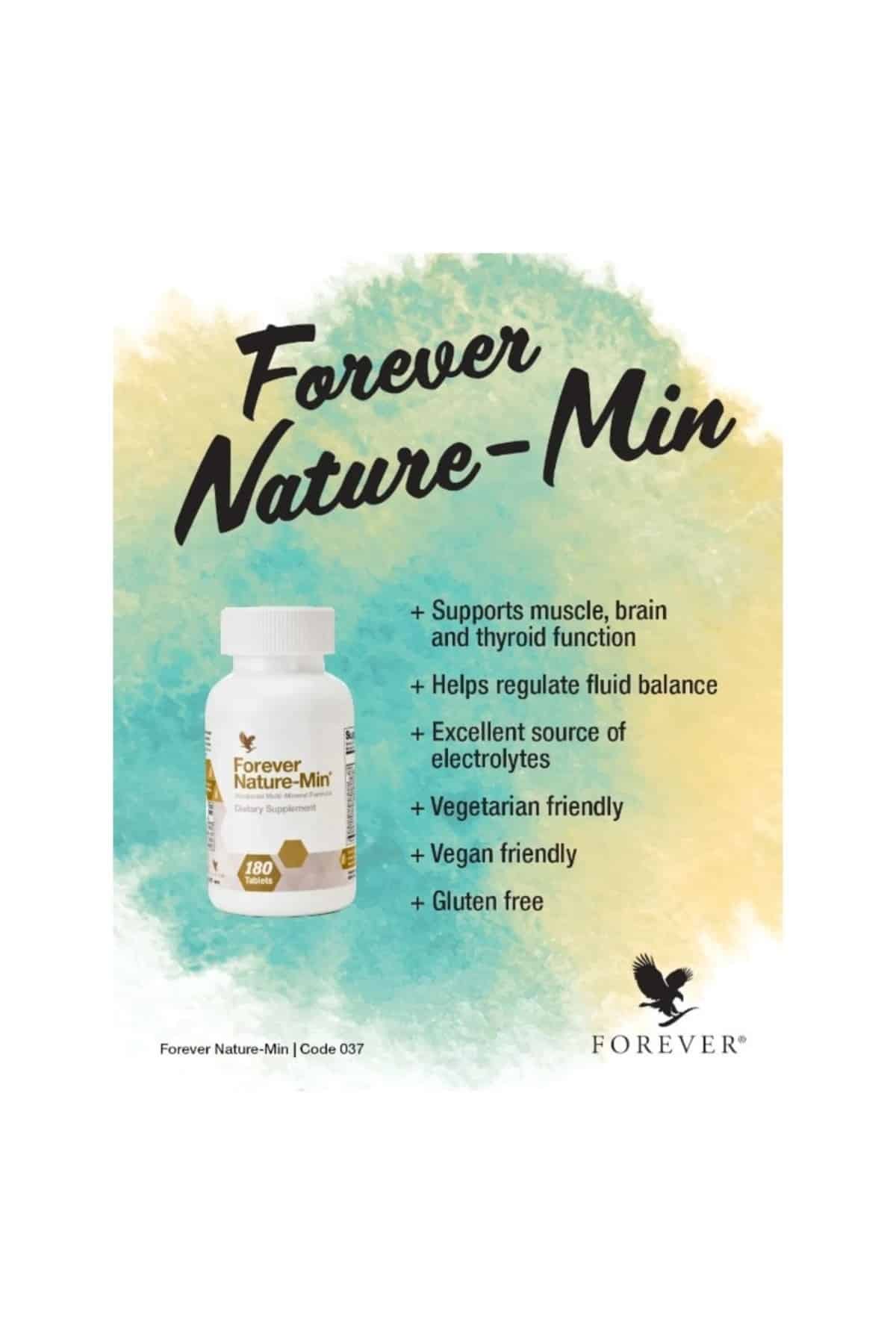 فوريفر نيتشر-مين – يساعد على تنظيم توازن السوائل، وهو مكمل غذائي شامل غني بالمعادن النزرة الأساسية لدعم توازن السوائل، ووظيفة الإلكتروليت، والتوازن المعدني العام لصحة وحيوية مثالية.