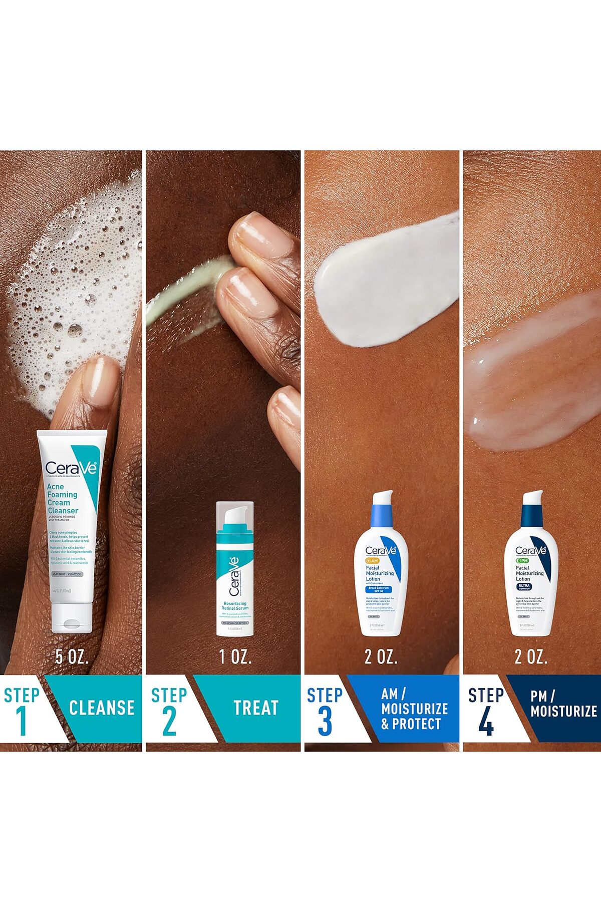 - يتضمن منظفًا وريتينول ومرطبات صباحًا ومساءً