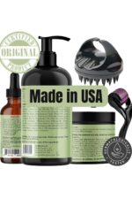 نظام تقوية كامل مع مجموعة تقوية الشعر بالروزماري والنعناع العضوية – العناية الشاملة بالنمو، والتي تحتوي على زيت وشامبو وقناع وأسطوانة ديرما ومقشر للعناية الكاملة بالشعر وفروة الرأس.