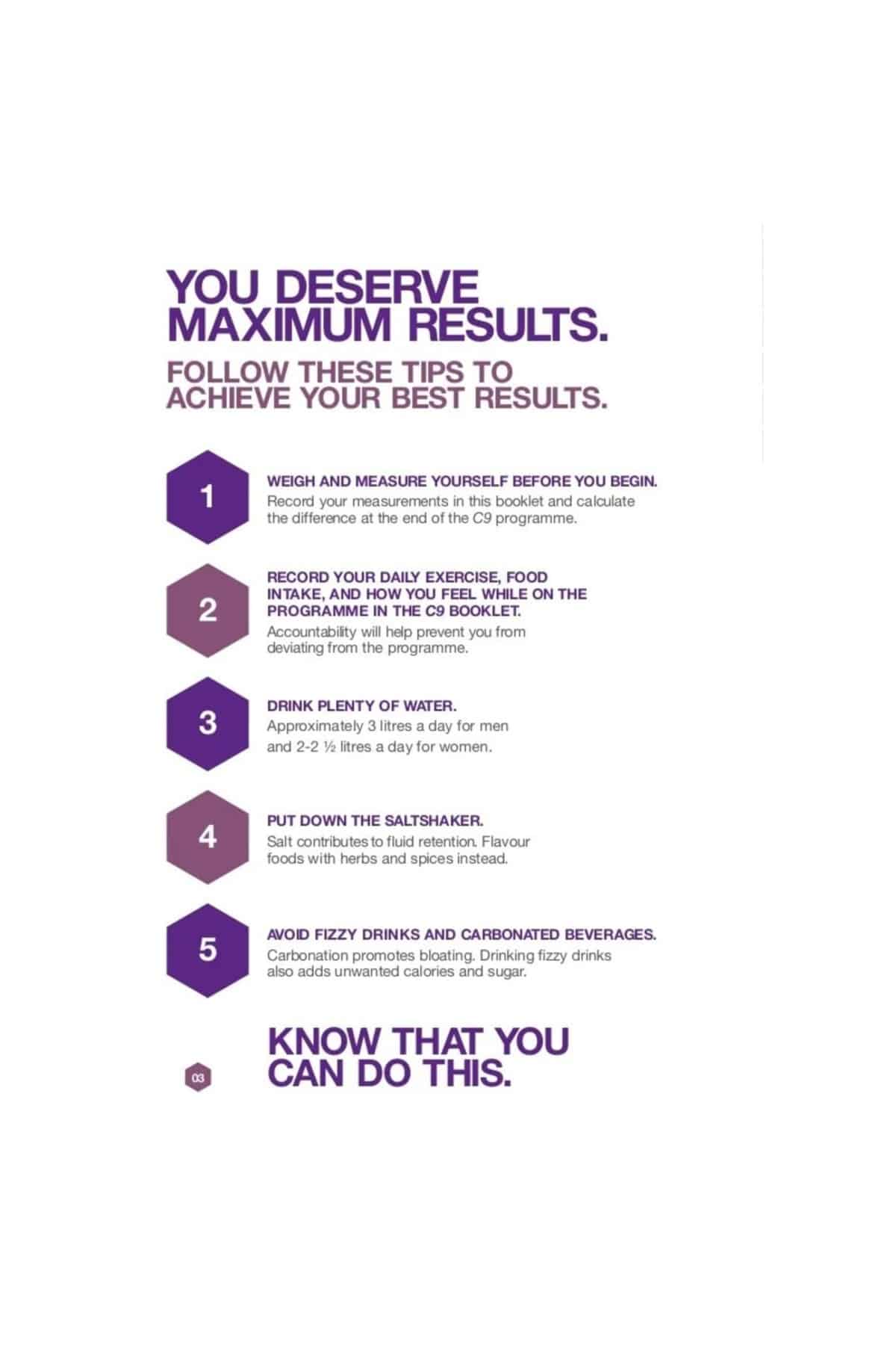 اتبع تعليمات برنامج التسعة أيام بعناية للحصول على أفضل نتائج إزالة السموم والعافية.