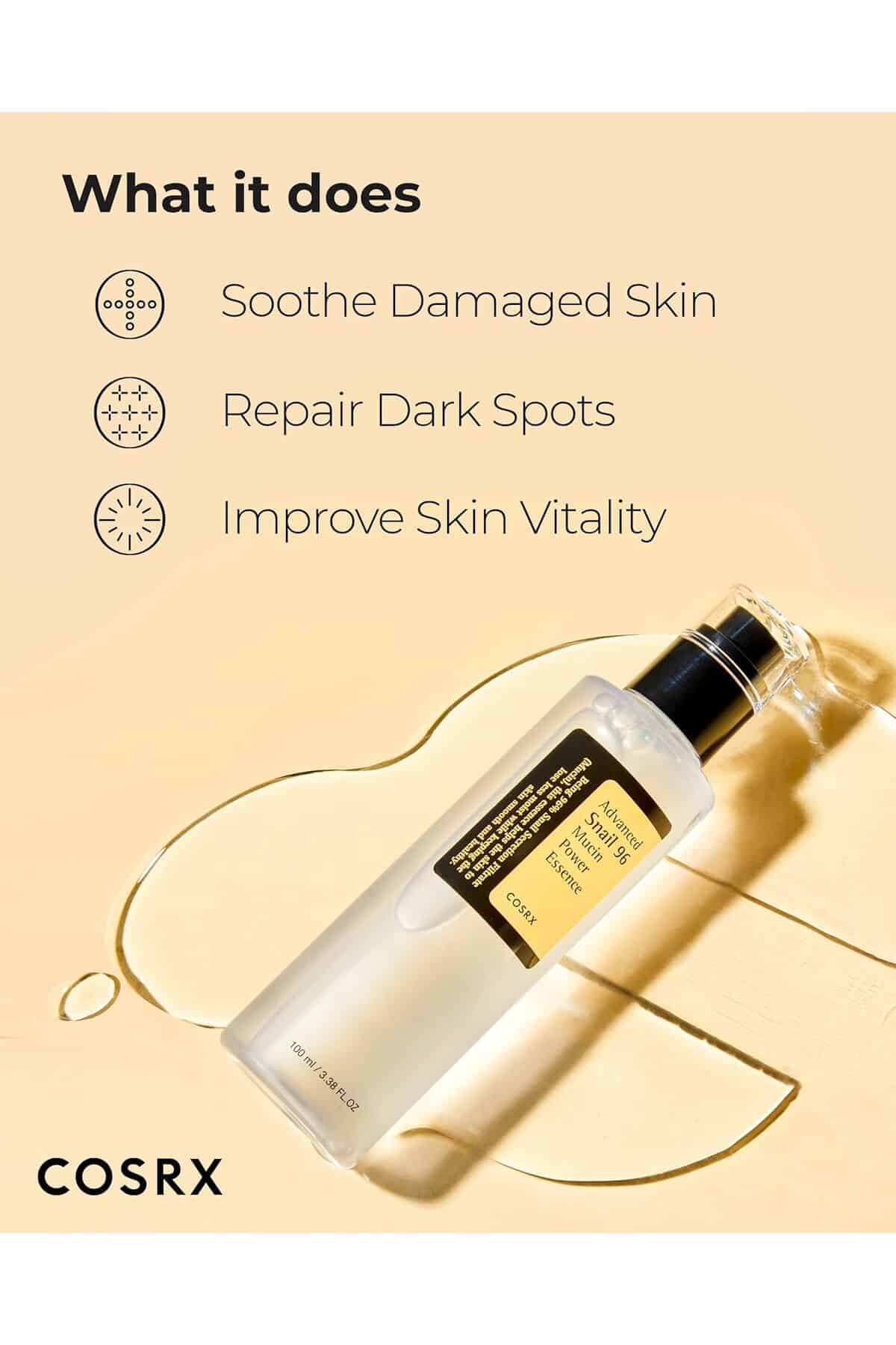 جرب القوة الأسطورية لمخاط الحلزون مع [COSRX] Advanced Snail 96 Mucin Power Essence 100ml – Korea Cosmetics، وهو عنصر أساسي في مستحضرات التجميل الكورية يوفر ترطيبًا مكثفًا وإصلاحًا وإشراقًا مع ترشيح إفراز الحلزون بنسبة 96٪.