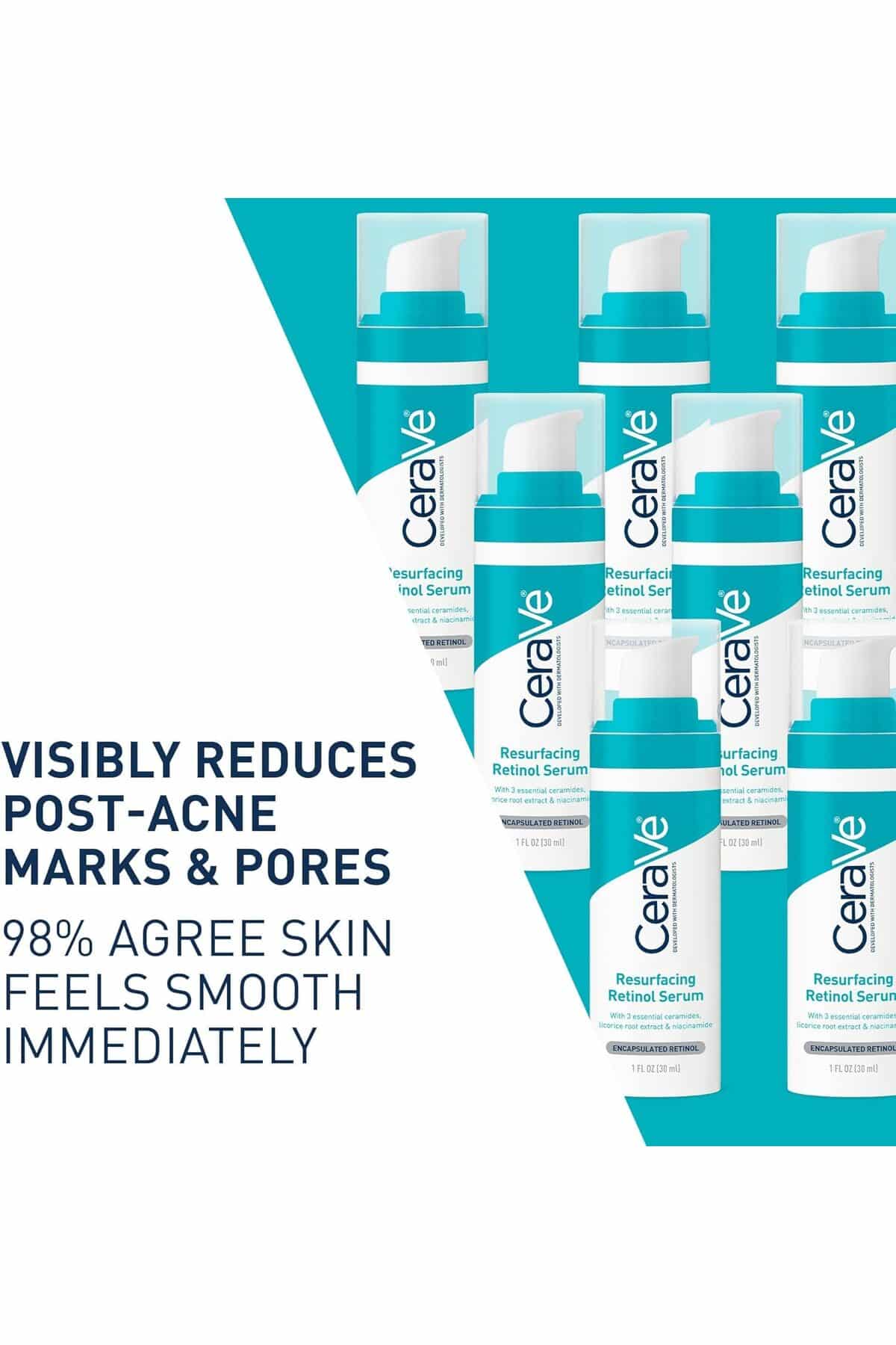 Product Description Post-acne correction with CeraVe Resurfacing Retinol Serum , specifically targeting post-acne marks and enlarged pores with retinol and licorice root. Key Benefits Reduces post-acne marks Minimizes appearance of