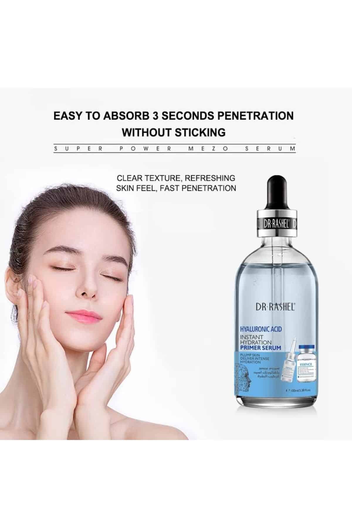 Product Description Achieve a smooth, hydrated makeup base with the Dr. Rashel Hyaluronic Acid Instant Hydration Primer Serum . This lightweight serum plumps the skin, boosts hydration, and creates the