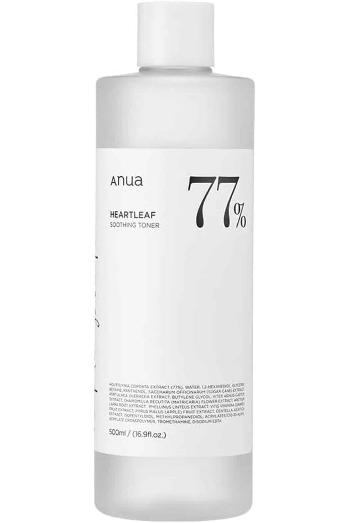 Product Description Enjoy extended soothing care with Heartleaf 77% Soothing Toner 500 ml , an extra-large sized toner featuring 77% heartleaf extract to provide intensive calming relief and pH balancing