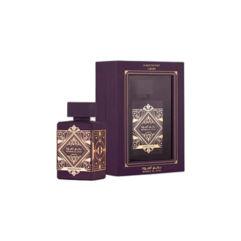 Lattafa Bade’e Al Oud Amethyst Eau de Parfum is an enchanting fusion of boldness and luxury, designed for those who embrace elegance with confidence. It opens with a luminous burst of Bergamot, fiery Pink Peppercorn, and the luscious depth of Blackcurrant, creating a vibrant and alluring introduction. At its heart, the velvety richness of Peony meets the indulgent sweetness of Caramel, all wrapped in the deep, mysterious embrace of Oud Wood, adding warmth and intrigue. The fragrance lingers with a sensual base of Raspberry, earthy Patchouli, and the golden glow of Dry Amber, leaving a mesmerizing and unforgettable trail. Bade’e Al Oud Amethyst is a masterpiece of sophistication, perfect for anyone who seeks a scent that is as captivating as it is timeless.