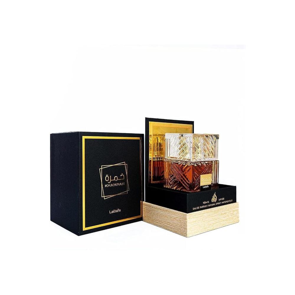 Khamrah by Lattafa Perfumes is an Aromatic Spicy fragrance for women and men. This is a new fragrance. Khamrah was launched in 2022. The top notes are Cinnamon, Nutmeg, and Bergamot; the middle notes are Dates, Praline, Tuberose, and Mahonial; the base notes are Vanilla, Tonka Bean, Amberwood, Myrrh, Benzoin, and Akigalawood.