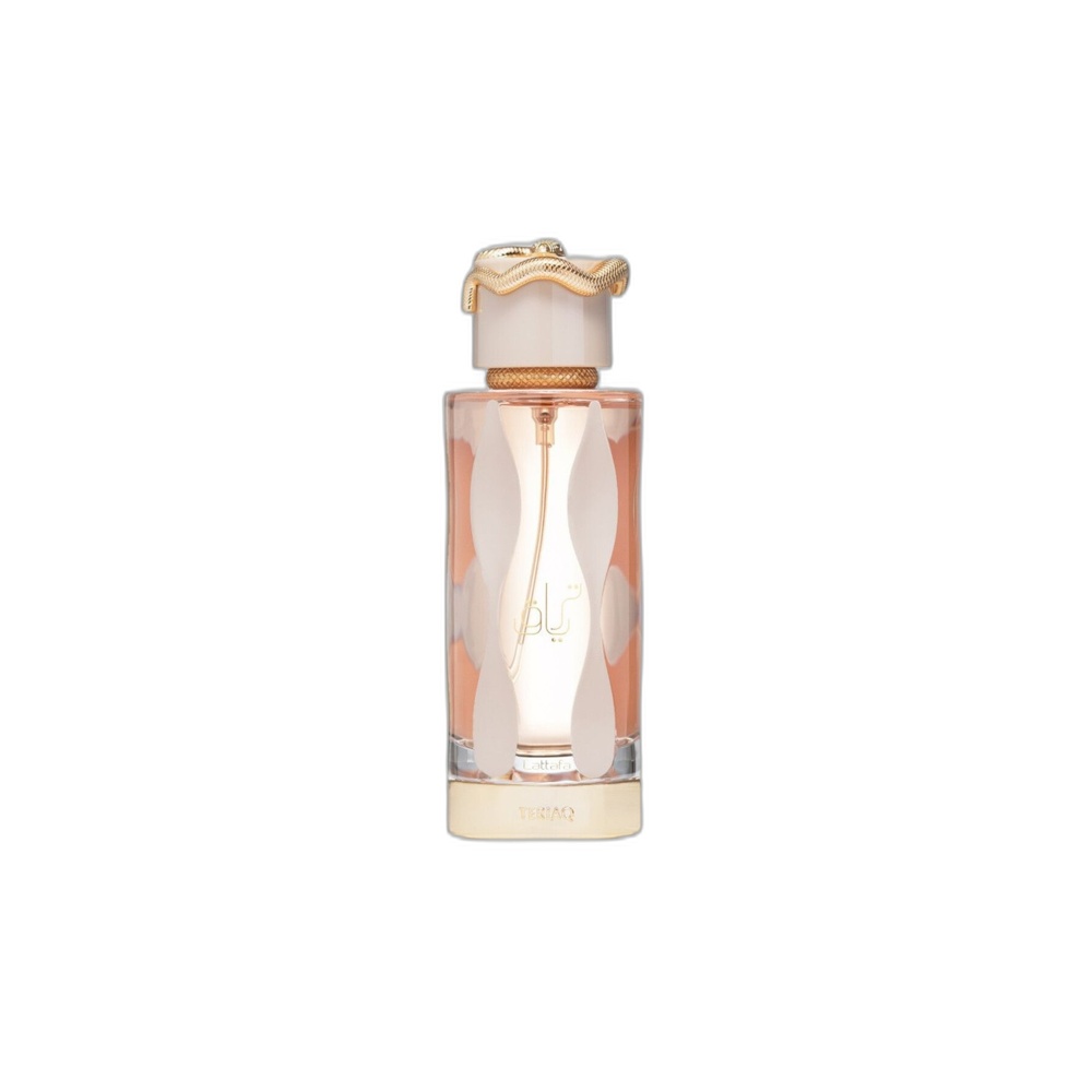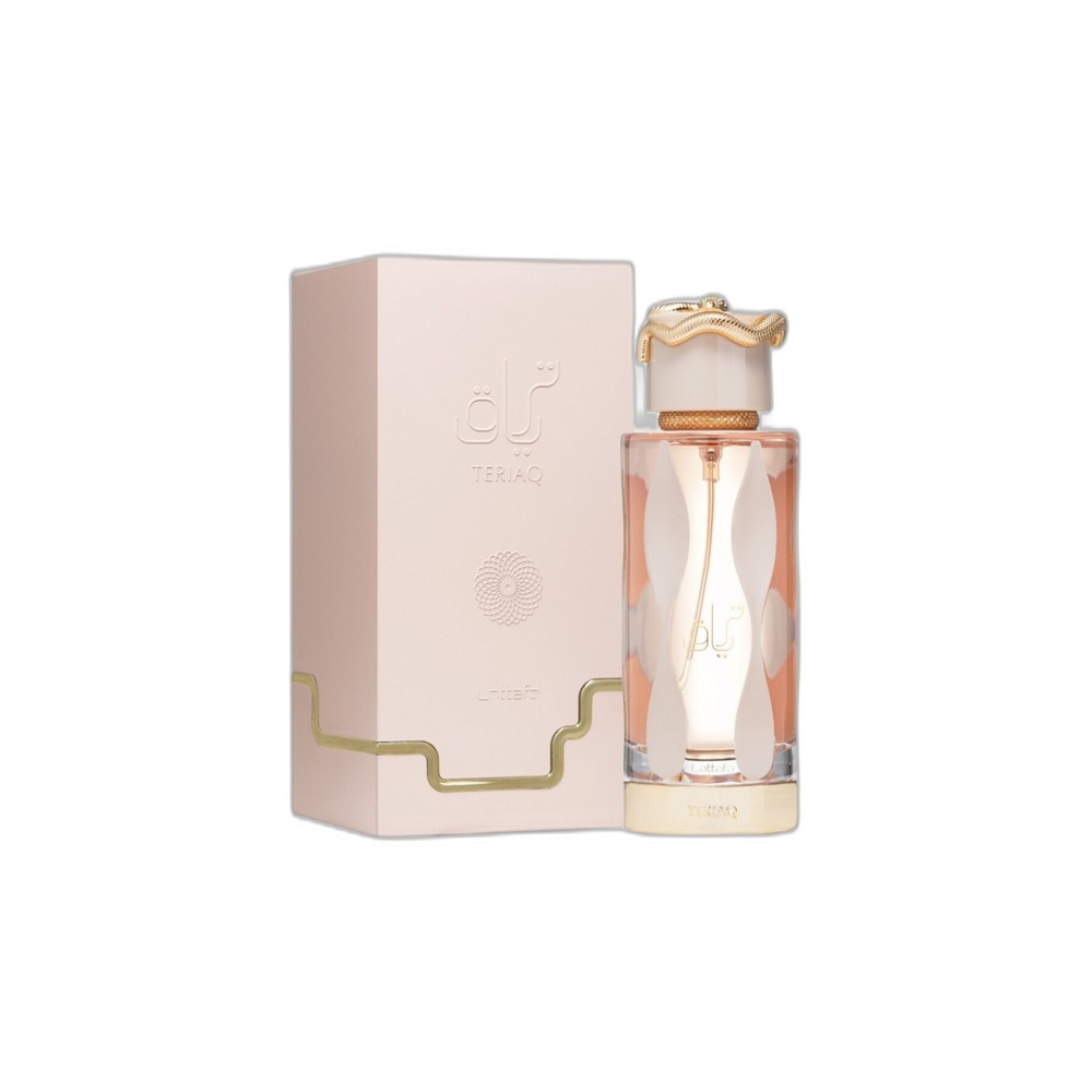Teriaq by Lattafa Perfumes is a fragrance for women and men. This is a new fragrance. Teriaq was launched in 2024. The nose behind this fragrance is Quentin Bisch. Top notes are Pink Pepper, Caramel, Bitter Almond and Apricot; middle notes are Honey, White Flowers, Rhubarb and Rose; base notes are Vanilla, Leather, Labdanum, Musk and Vetiver.
