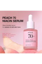 Illuminate your complexion with Peach 70 Niacinamide Serum 30ml, featuring peach extract and niacinamide that work together to brighten skin, reduce hyperpigmentation, and provide antioxidant benefits.
