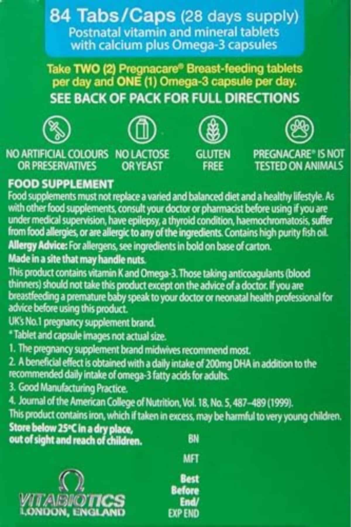 Pregnacare Breastfeeding 56 Tablets & 28 Capsules | Expert Postpartum Nutrition with Omega-3, a comprehensive postnatal supplement specifically designed for breastfeeding mothers, providing essential nutrients to support maternal recovery and milk quality.