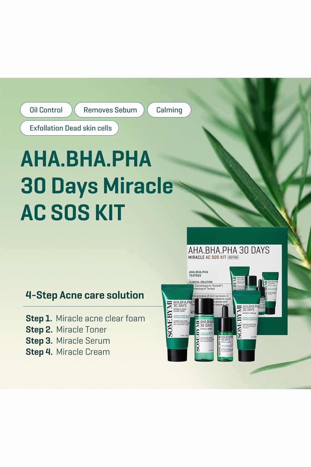 Product Description Emergency acne care with Some By Mi AHA BHA PHA 30Days Miracle AC SOS Kit . This emergency kit provides immediate acne care with triple acid technology for