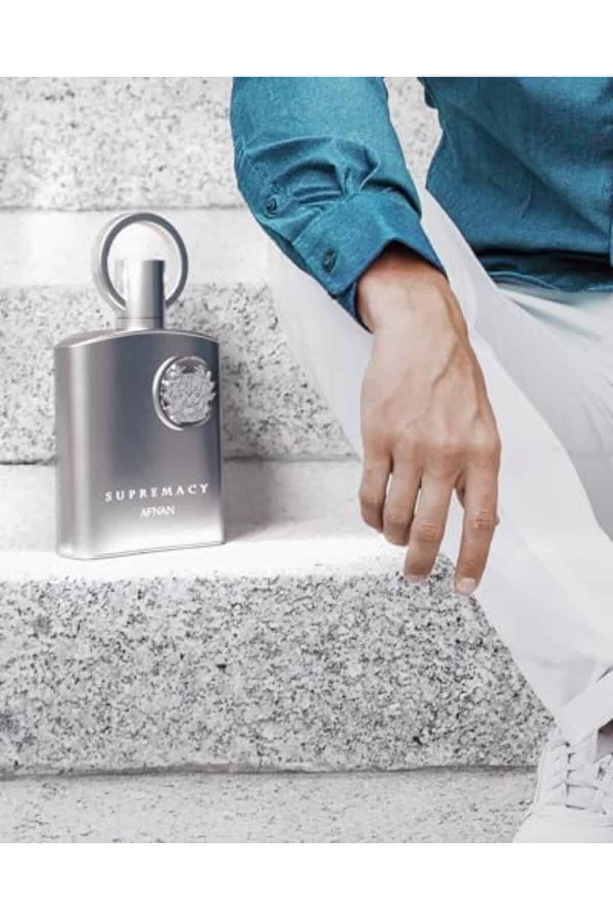 Supreme masculine elegance Supremacy Silver Eau De Parfum for Men, 150 ML – Supreme Elegance, combining metallic freshness with warm amber and woody notes in generous 150ml presentation for the man who demands excellence.