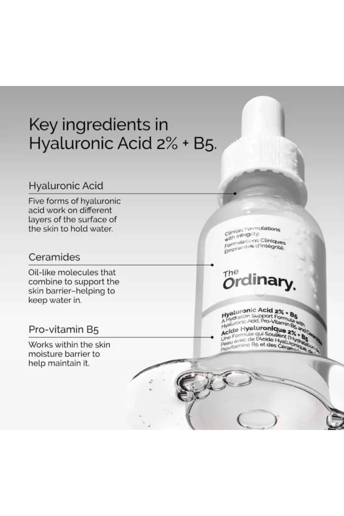 Product Description Intensive hydration with THE ORDINARY Hyaluronic Acid 2% + B5, 60ml . This larger 60ml size provides intensive multi-level hydration with vitamin B5 for skin repair. Key Benefits
